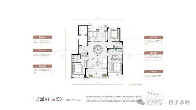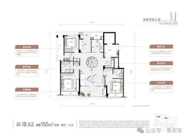 Floor plan design: The main floor plan is approximately 155 square meters, featuring four bedrooms and achieving a "near-triplet home" layout. It is fully connected north and south, with a south-facing width of about 12.7 meters, providing excellent lighting and views. The usable area reaches approximately 90%, and the space utilization rate is high.