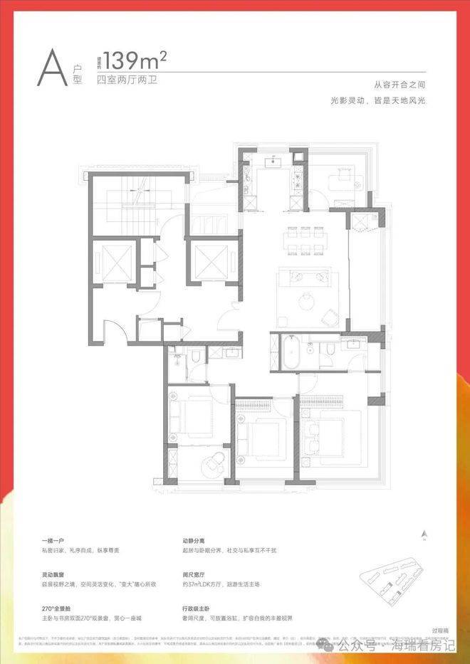 建面约139㎡四房户型: