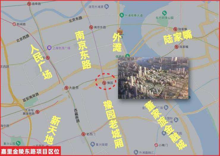 整个项目位于10/14号线豫园站上盖,是黄浦相当重要的“枢纽”一般的位置,因为金陵东路的东南西北被人民广场、南京东路、外滩、陆家嘴、南外滩、豫园老城厢、淮海路新天地7大重磅CAZ板块所包围!
