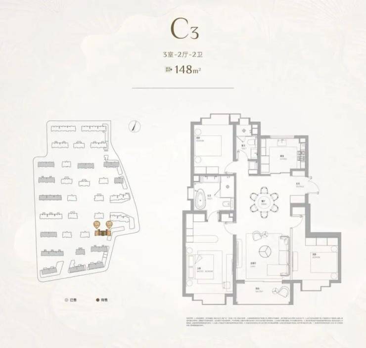 接着看一下建面约113㎡的3房2厅2卫户型。
