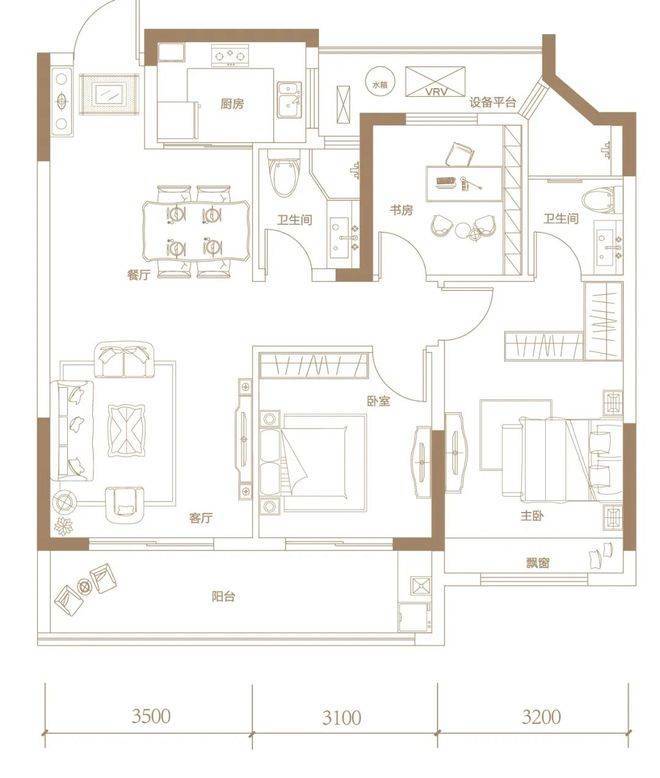 三开间阳台长达10.8米,是整个户型的点睛之笔。