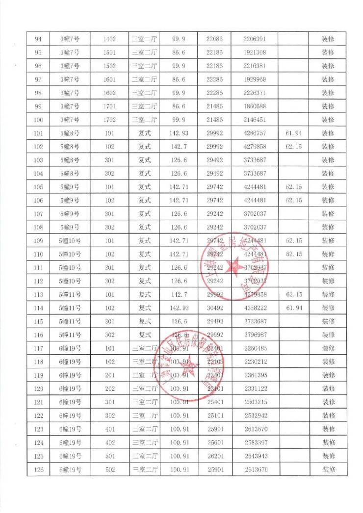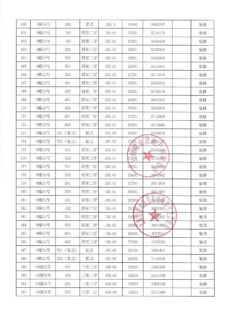 项目一房一价表