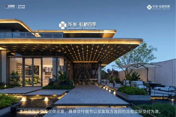 华发虹桥四季以酒店式标准打造高品质社区,园林设计强调现代与自然融合,营造出静谧优雅的居住松弛感氛围!