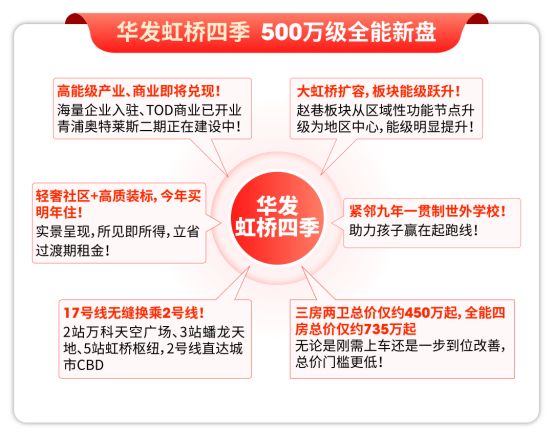 华发虹桥四季是当下市场上你能买到的屈指可数的、有高能级地铁、有置业热度、有板块潜力、紧邻优质全龄教育的500万级新盘中的六边形战士!