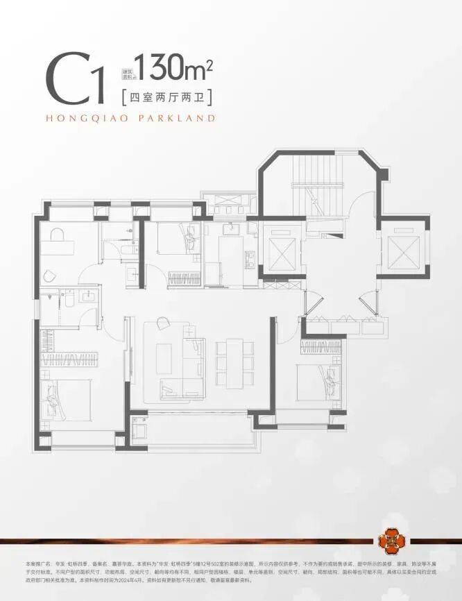 建面约130m²四房两厅两卫,总价约735万起,改善置业一步到位!可以说是外环外改善置业王炸产品!飞机户型、约6.1米宽景横厅、LDK一体化设计、双明卫生间、高附赠飘窗设计,可以说将采光、景观视野、居住舒适度都做到极致。完全可以满足三代同堂、二胎家庭的居住空间需求,绝对不容错过!