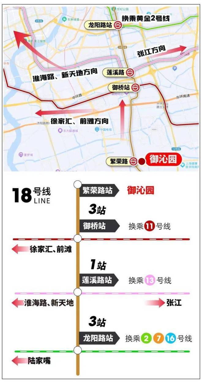 在18号线便捷换乘下,从御沁园到市区各重要商业、办公节点都非常方便!