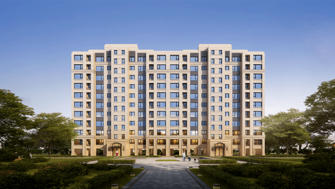 在建筑立面上,「华发招商依云四季」采用的是简约新古典风格,线条简约干净,颜色整体为暖色,深浅搭配,呈现出古典而简约的建筑形象。