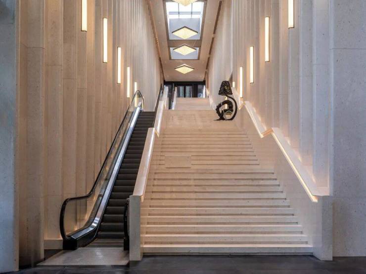 万科中興傲舍以美术馆标准锻造艺术会所,在中兴路一号基础上实现迭代升级。空间内融入上海首座度假风植物园泳池、沉浸式艺术光影长廊、女性友好型健身房,以及标志性的三层挑空艺术阶梯——此阶梯原为两层设计,团队为追求卓越体验不惜推翻重来,最终以恢弘尺度营造拾级而上的“艺术殿堂”仪式感,阶间点缀国内外大师艺术品,让归家步履浸染美学氛围。