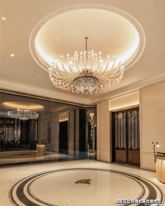 预接待厅门头源于招商局出资创办的原南洋公学(现在上海交大)三段式建筑造型。优美、经典的软装风格定制无不彰显着生活的品味,天花板定制了细腻入微的deco设计细节,地面瓷砖采用威尼斯白与爵士白石材拼花设计,纯人工铺装保证花纹的奢华质感,壁面装饰的水品灯,选用高规格的E9级进口水晶制作,真正将海派设计融入生活。