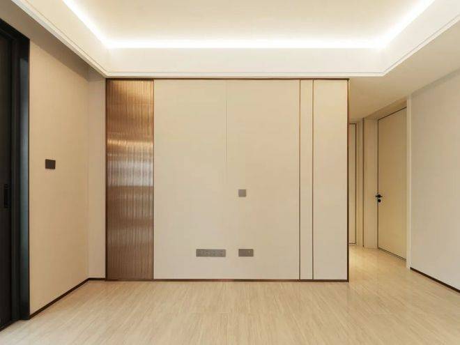 南向三个房间,面宽超过了约9m,主卧和中间的次卧都带飘窗,采光条件突出。入户做了独立玄关、主卧做了步入式衣帽间,仪式感也足够强。
