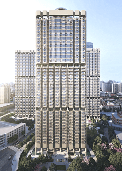 It has replaced OCT Suzhou River Bay to become the tallest residential building in Puxi