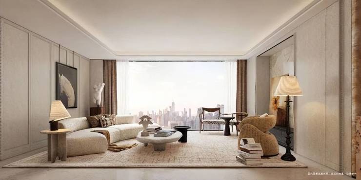 270°三面观景,南向约15米瞰江面,东向纵瞰河与园,北向拥揽世博园景。以黄浦江为灵感,通过8.5米南向宽厅、270°环幕玻璃与减法美学,让空间与心境一同舒展。