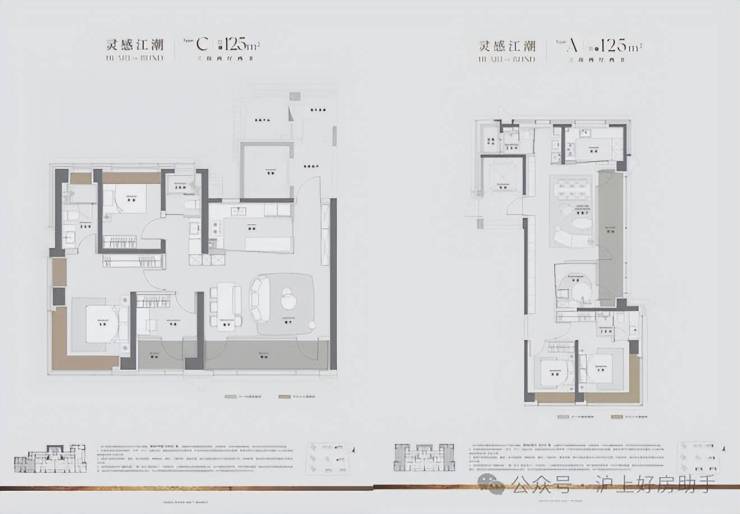 建面125㎡户型,这个户型的含金量和受欢迎程度不用多说,也是前期卖得非常火爆的小户型。