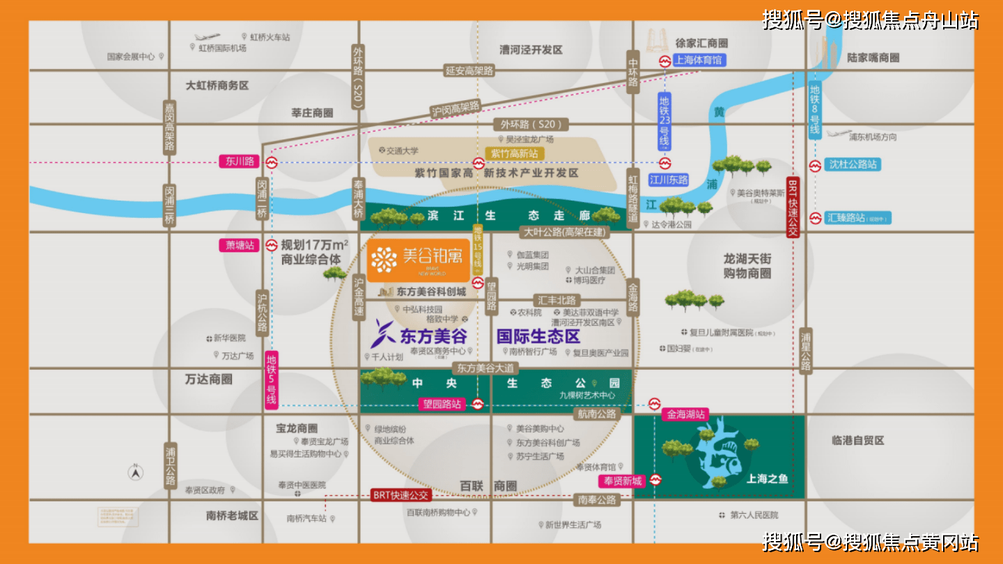 2.公路高速:大叶公路(松江,奉贤,浦东)虹梅南路--金海路越江隧道,连接中环,贯穿闵行奉贤两大副中心;S4沪金高速,连接外环;卢浦大桥等
