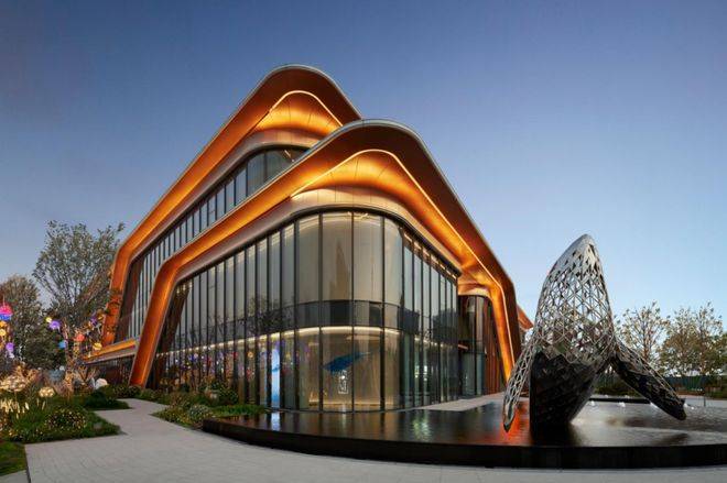 建筑立面犹如风帆造型,叠加海弧线元素,灵动又符合年轻人的审美。