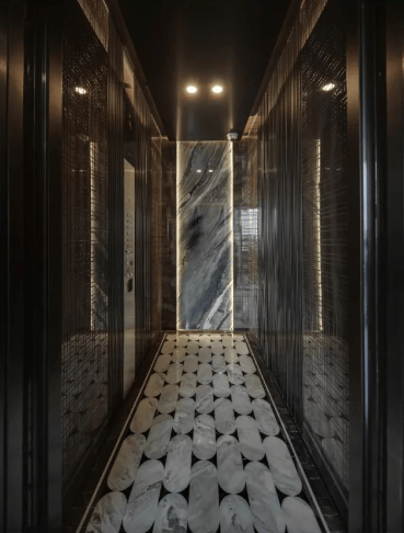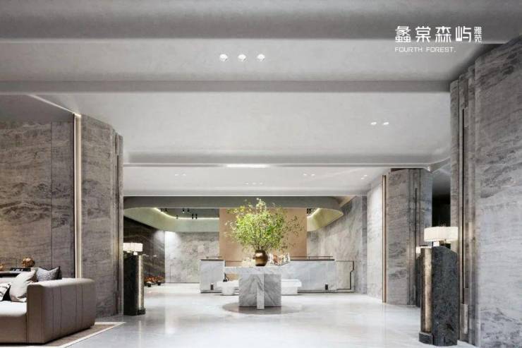 酒店式落客大堂挑高达7.5米恢弘之势,开启渐进式的礼序归家情境风范之间,让停留成为至高无上的仪式。