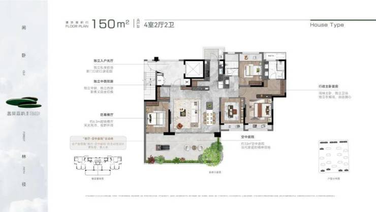 蠡棠森屿所有户型露台挑高可达6m,突破了高度限制,成就了墅级的挑高厅。很多户型拥有南北及270°转角露台,创新曲面转角院落,并实现全户型搭载“客厅/卧室-空中庭院”的主动线设计,整体营造立体墅式庭院生活场景。