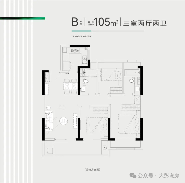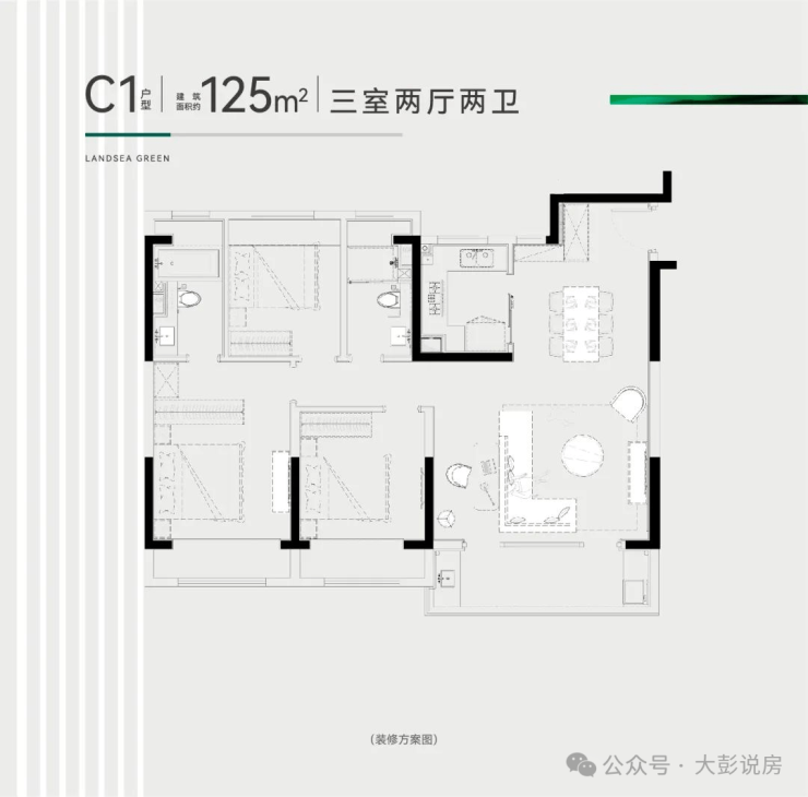 105/123/125㎡:3 房 2 厅 2 卫・主流改善・全明通透
