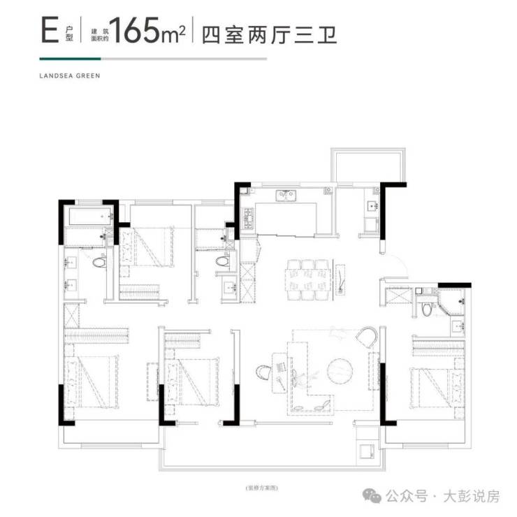 165㎡:4 房 2 厅 3 卫・低密洋房・奢阔尺度