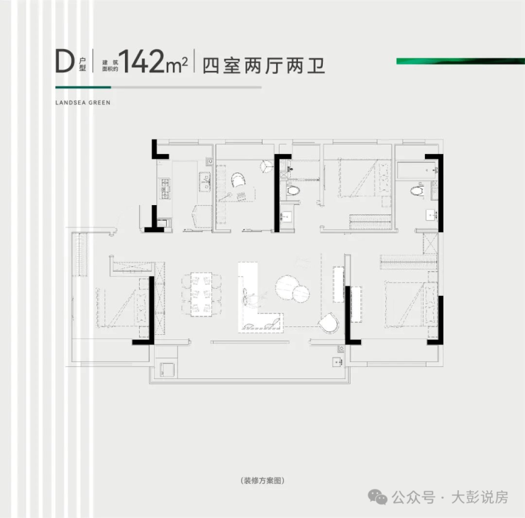 142㎡:4 房 2 厅 2 卫・阔绰横厅・大家庭首选