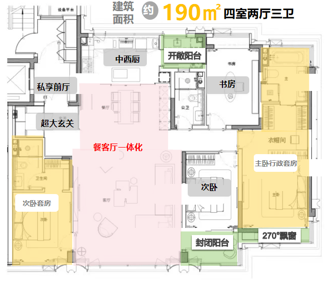 主力户型: 约190㎡4房3卫