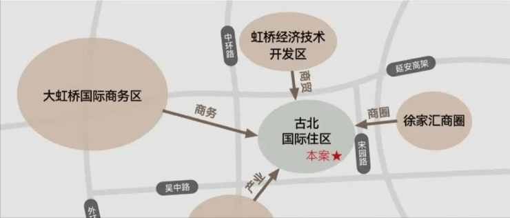 项目地处徐汇、长宁、闵行三区交汇处,是经贸产业核心圈中唯一的高端宜居板块。