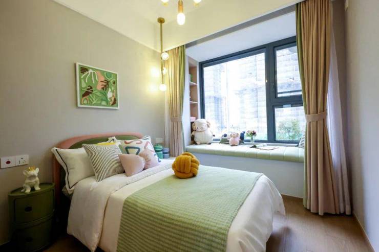 建面约91㎡做3房2卫,三开间朝南、3房5飘窗1阳台,整体室内的采光、视野以及通风都相当出彩。动静分离+主卧套房的设计,保证了整体居住的安静和私密性。