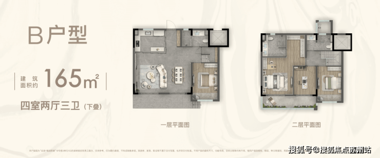 在售户型: B户型(165下叠) 四房两厅三卫 418-468万