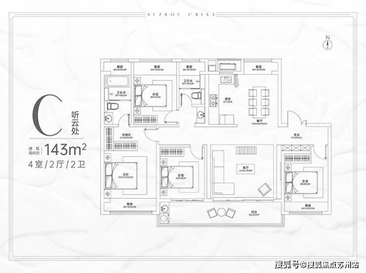 户型设计:提供建筑面积约103㎡至168㎡的多种户型,包含三居和四居,采用均尺空间营造和大横厅规划