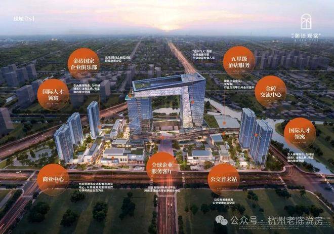 钱塘地标为邻:项目与金砖合作中心(中企国际港)直线距离仅约0.3km,江海之城重磅地标建筑,总体量约33万方,总投资约51亿,规划包含甲级写字楼,星级酒店,配套商业等。