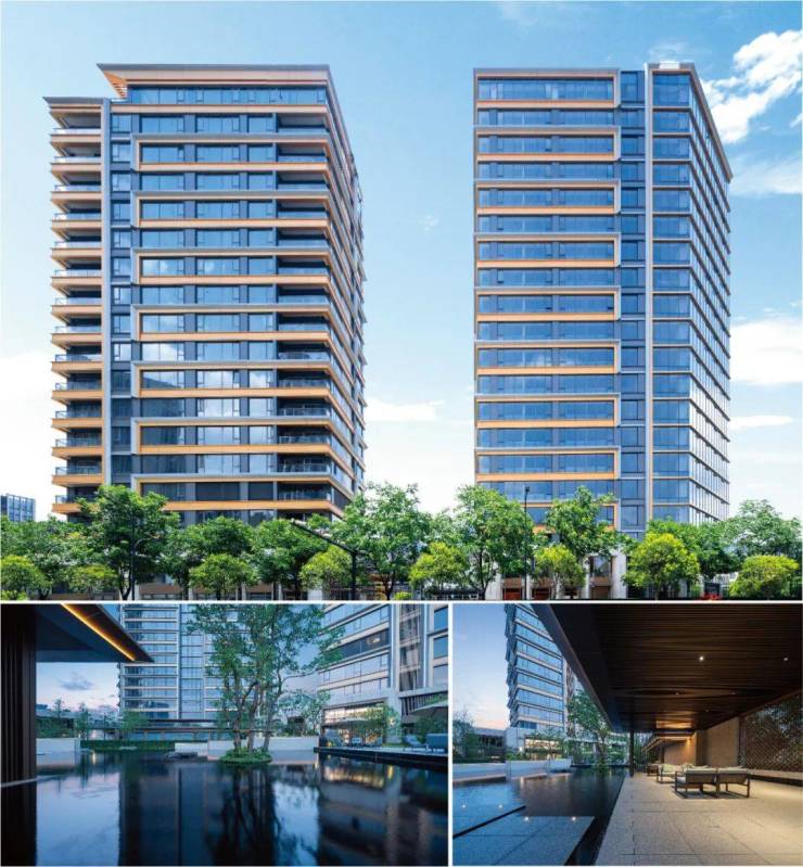 项目位于杭州市上城区江河汇板块,项目占地面积1.27万m²,总建筑面积7.12万m²,包括2栋大平层和1栋酒店,容积率4.0。项目外立面由享誉国际的日清设计团队精心打造,大面积的玻璃幕墙与铝板、石材巧妙融合,斜切的线条与香槟色的金属点缀其间,构成了江河汇版图上极为靓丽的天际线。大面积幕墙、铝板、石材经“HARRY WINSTON”钻石打磨般切割工艺,营建如水奔涌的轻盈线条、大小各异的丰富立面形态,立标极简内敛的当代风尚。