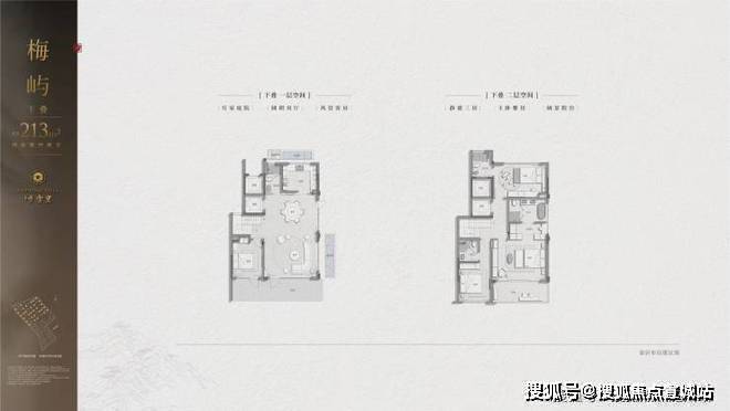 户型面积:叠排约 213-291 平方米,下叠带南向花园(约 60 平方米)、地下室(约 100 平方米);上叠带星空露台、南北双阳台。合院约 296-339 平方米,三面庭院设计,L 型景观面,首层约 7 米横厅,地下室层高 5.7 米。