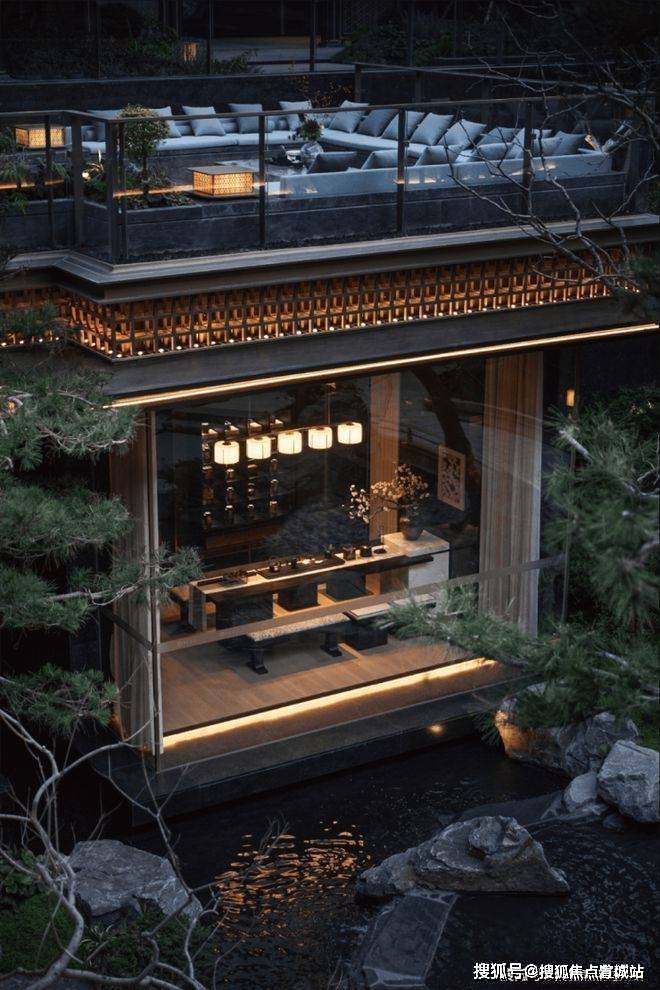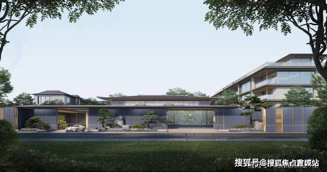 建筑设计:以新宋风为特色,融合歇山重檐、纳福悬鱼等传统元素,采用蓝眼睛石材、铝板、玻璃幕墙,香槟金与古典灰配色。