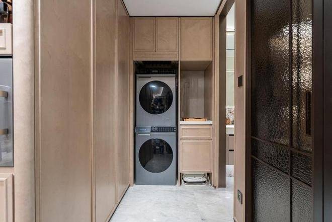 还交付一体化餐边柜,收纳能力惊人;同时该户型还配备专属家政空间,邻卫生间,动线更流畅,彻底解放阳台,阳台不用晾晒,完全用于观景或志趣空间。