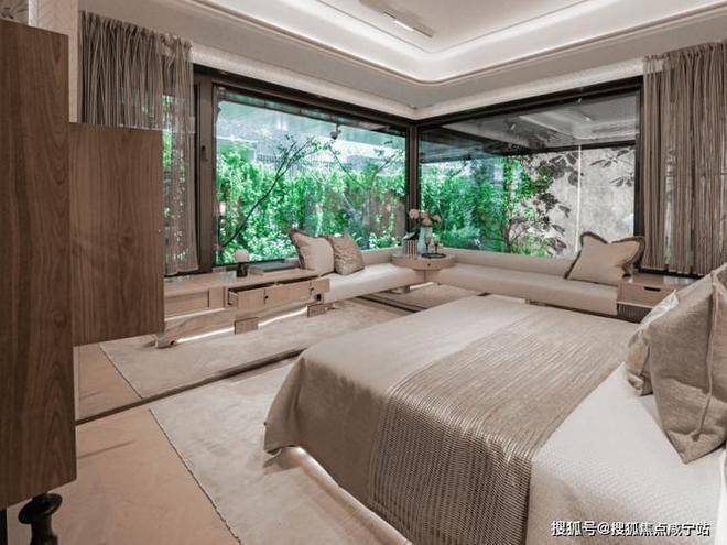 临水而筑的架空层,以通透布局引自然光与园景入室,度假般的松弛感扑面而来。