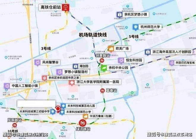 It is approximately 600 meters in a straight line from the Fifth Kindergarten, the Fourth Primary School and the Third Junior High School of Future Science and Technology City, about 3.3 kilometers from Hangzhou Normal University Affiliated Cangqian Experimental Middle School, about 3.6 kilometers from Hangzhou Normal University Cangqian Campus, and about 3.2 kilometers from Zhejiang Administration College, etc