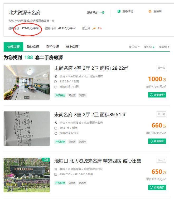 目前,透明售房网站有该小区挂牌房源约188套,挂牌均价4.78万/平!