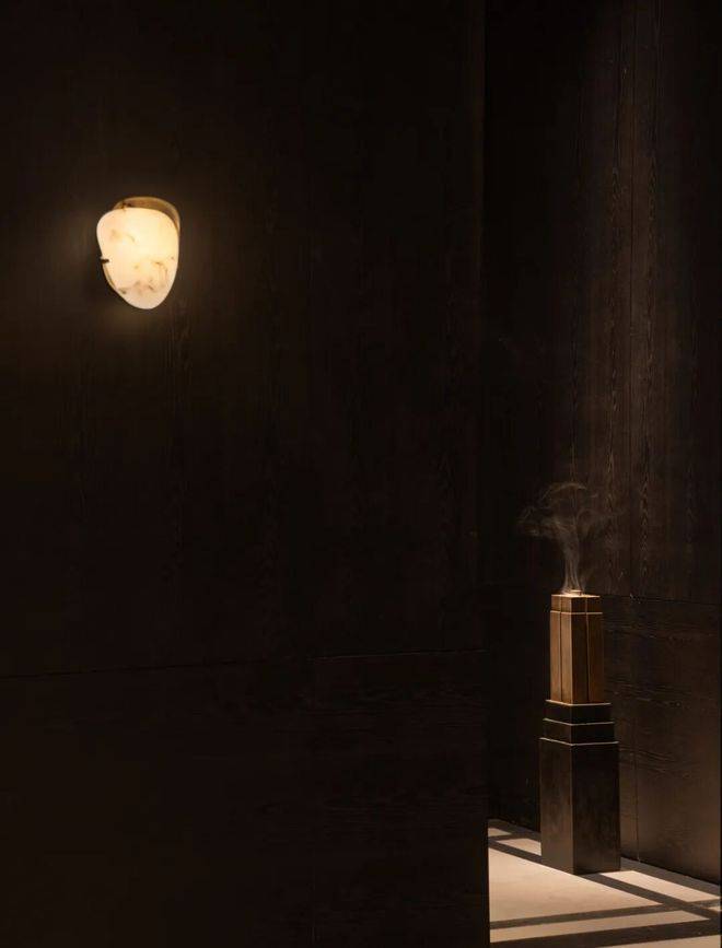 我们时常需要某一瞬的宁静,去释放身体与记忆中的束缚。酒廊内,光影的温度凝结成历史的肌理,柔和的灯光低语般地照映出材质的细腻层次。Verrerie Des Hanots设计的中古壁灯投射出低沉的光晕,像一缕沉淀的余韵,将时光的回响与记忆的绵延置于一隅。这样的空间,既是栖身之所,又是身心的庇护所,意在唤醒个体对黄金年代的一种隐约共鸣,让人得以脱离当下,心意温存,感怀不已。