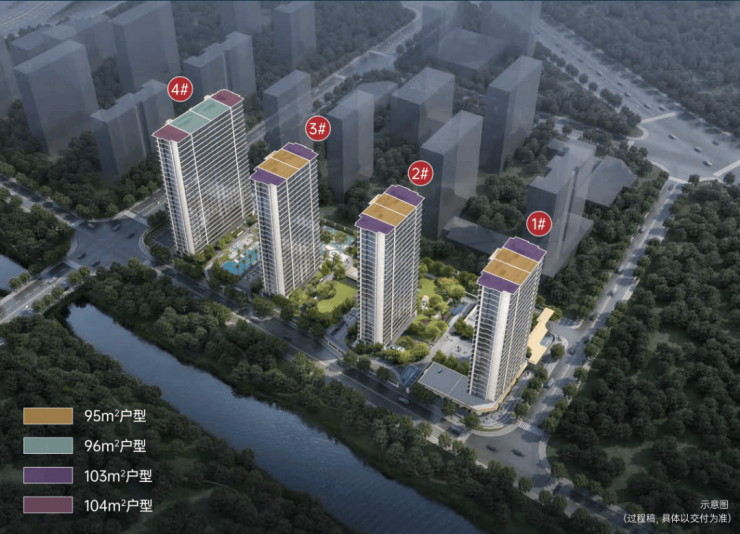 规划参数:占地约2万㎡,建筑面积约6.26万㎡,容积率2.2,绿地率35%,规划4幢24-26层高层住宅,共434户,得房率高达90%23。