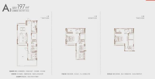 A地块的容积率最低,只有1.35,共有71套房源,由13套别墅和58套洋房组成,联排面积为196平,有独立的入户花园和地下附赠空间。洋房面积约97-198㎡。