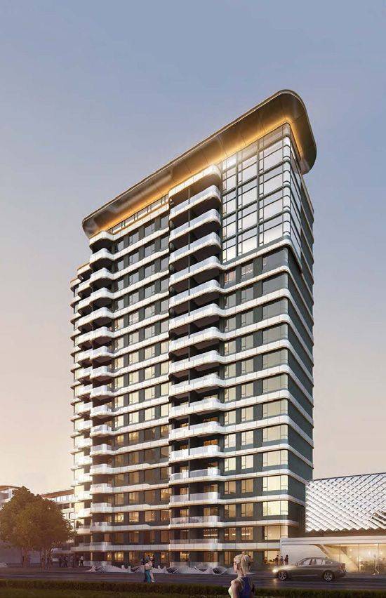 从图上来看外立面应该是铝板+大面积玻璃组成的,建筑顶部采用了市面上少见的弧形塔冠装饰,视觉效果比较丰富。