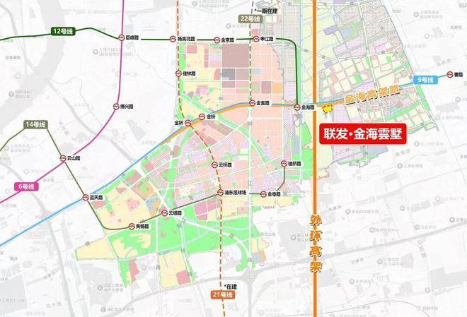 轨交层面,项目位于9/12号线金海路—顾唐路之间,直线距离金海路站约600米;14号线桂桥路站约2公里。