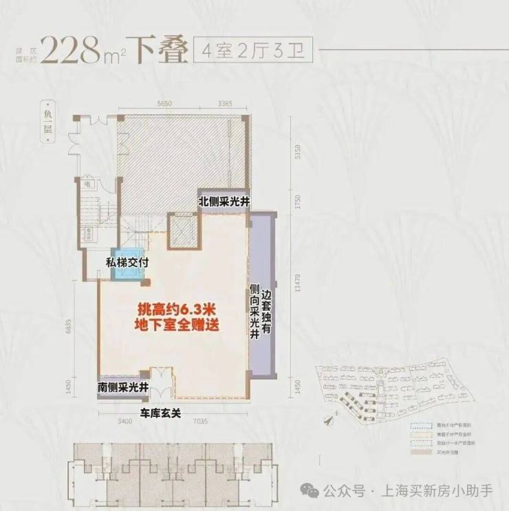 三批价建面约125㎡小高层225、230㎡别墅户型,完美符合这两条定义。