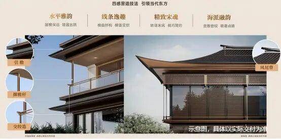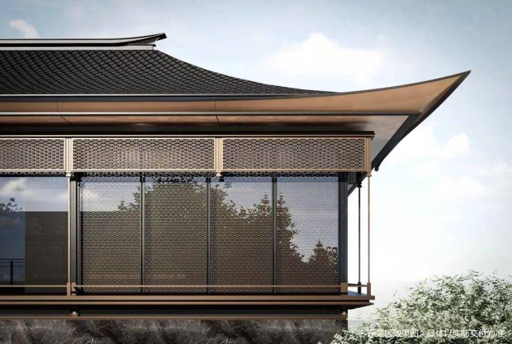 【立面】项目立面通过多种新中式元素构筑东方建筑美学,让建筑本身温润厚重从而历久弥新。横向采用大面玻璃幕墙,保障隐私的同时,尽可能的增大建筑内外场景对话。