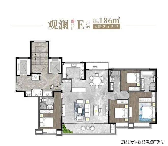 部分户型具有标准层高设计,户型方正,空间使用性高,有独立玄关提升隐私性。4 室的设计适合改善型人群,2 卫的配置可避免抢卫生间的尴尬,保证主人生活的私密性。餐厅和客厅无缝连接,营造出局部大空间的体验。房间动区简约大气,提供舒适的生活娱乐氛围。部分主卧采用套房设计,扩大了卧室面积,配有独立的主卧卫生间,提升了主人的居住体验。部分户型的主阳台朝南,若装配落地窗,采光较好,且户型朝南的房间较多,可充分享受 “冬暖夏凉” 的舒适体验,同时南北通透,厨卫全明,室内采光无死角。