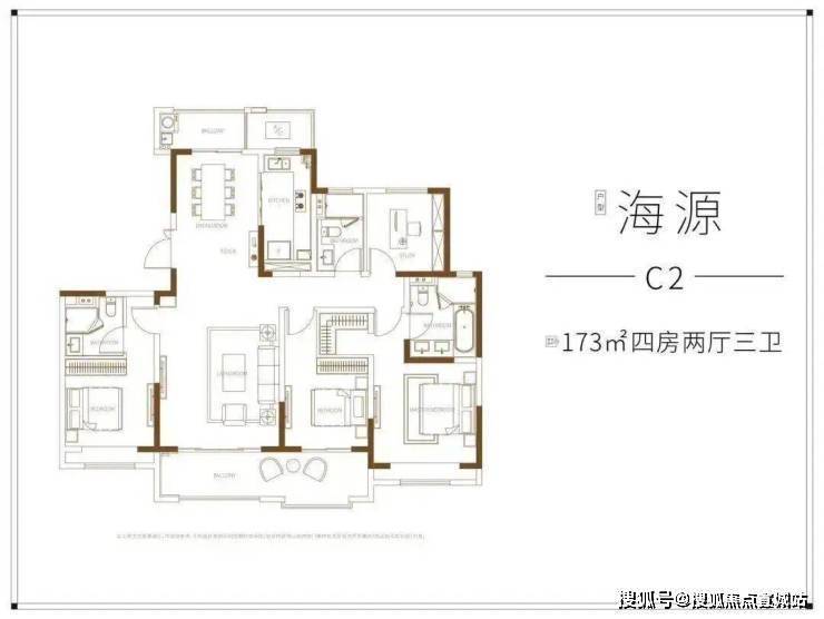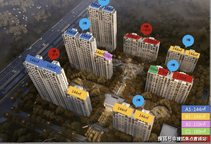 主力户型:精装高层,建筑面积约144㎡(三居)、173㎡(四居),均为一梯一户设计,层高3.1米