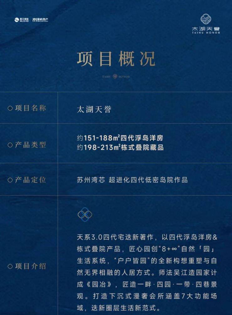 太湖天誉,以超进化四代低密导院住宅的划时代理念,于苏州湾芯,淬炼当下高端改善的心之所向与理想范本。这,是太湖天誉对吴江人居未来的诚挚献礼,更是对品质改善命题的革新解答。