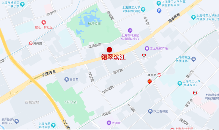 项目周边配套已经比较成熟,商业有长阳大润发、宝龙旭辉广场、七巧国广场、百联滨江等,滨江段还有国际时尚中心,在建的杨浦滨江合生汇商场等。