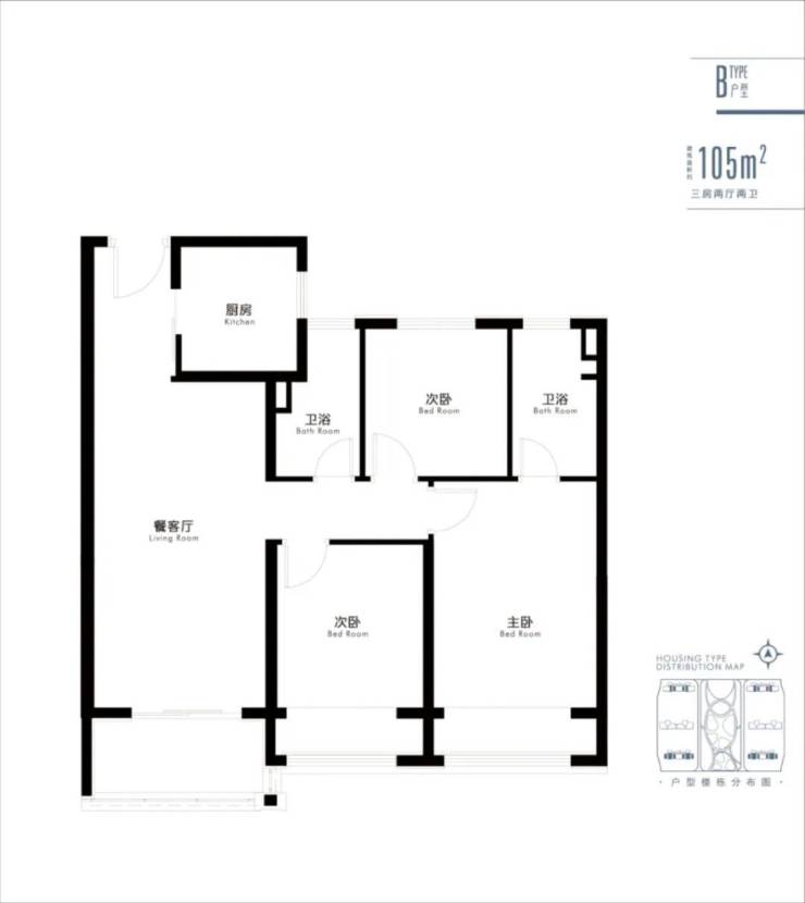 【B泊·云间】 建筑面积约105平3房2厅2卫