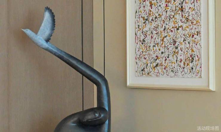 展示空间中的软装极富艺术趣味,比如青铜雕塑《我心飞翔》、玄关油画《飞翔的羽毛》、野崎信次郎《彩の花束》,大师们的真迹为空间注入高雅艺术底蕴,而儿童房的Qeeboo兔子椅则匹配孩童特性充满童趣。